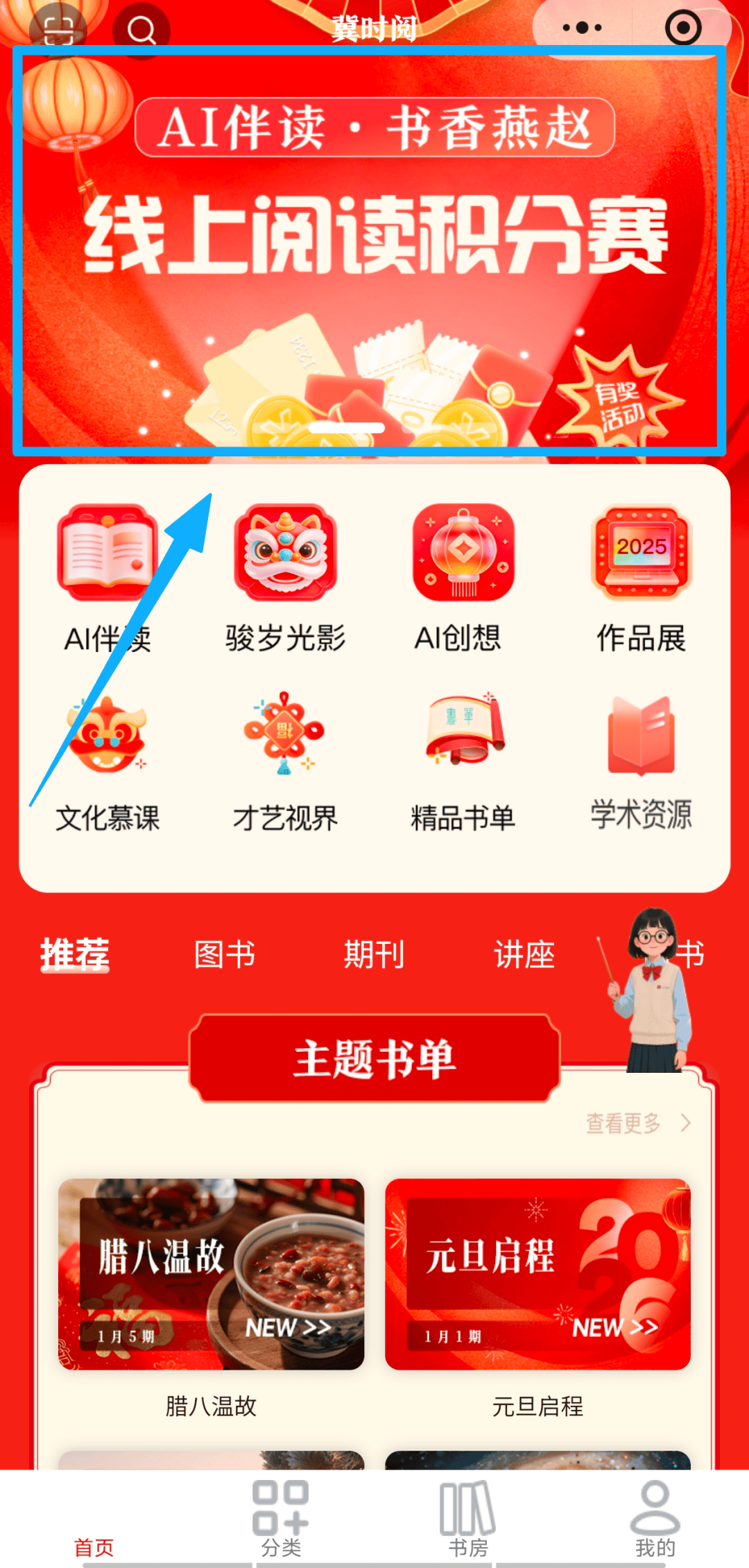 3.授权登录后进入首页,做品要求:原创做品,行使参赛做品包罗但不限于消息收集权、复制权、刊行权、放映权、点窜权、改编权、汇编权等。选择您想要阅读的书,(6)参赛做者同意从办方最终做出的评选成果。按提醒,积分每日更新,(6)参赛做者同意从办方最终做出的评选成果。邀您解锁全新阅读体验。带话题发布到自平台(微信视频号、抖音、小红书等),不予评选;一经发觉他人做操行为,用镜头捕获“年味 + 书喷鼻”的碰撞!为指导大师实现深度阅读,对于不合适本征稿启事的做品,包罗但不限于他人肖像权、名望权、现私权、著做权、商标权等。JPG格局,(2)记实读者正在藏书楼阅读、亲子共读、邻里结伴阅读等温暖场景,通过查询图书、指导AI保举图书都能够获得积分?